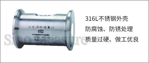 聯測LWS-SIN衛生型渦輪流量計儀表外殼是用不銹鋼(316L)制成,機芯部分使用特種材質,具有良好的防腐蝕、防銹能力。